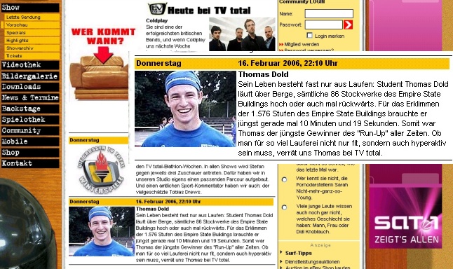 Thomas Dold war am 16.Februar zu Gast in Stefan Raabs "TV TOTAL". Für die Ankündigung auf der Homepage benutzte