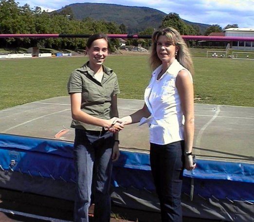 Annette Braun und Rebekka Kopp vom TV Haslach kamen bei den Deutschen Leichtathletik-Blockmeisterschaften in Illertissen/ die Plätze 25 und 28. Braun startete im Blockwettkampf Lauf der Schülerinnen W15 und erfüllte mit 2514 Punkten die in sie gesetzten Erwartungen. Sie rannte beim 100 Meter Lauf in 12,82 Sekunden über die Ziellinie, sprintete über 80 Meter Hürden in 13,85 Sekunden durch das Ziel, sprang 4,93 Meter weit, warf den 200g Ball auf 43,50 Meter und benötigte für den abschließenden 2000 Meter Lauf die Zeit von 8:14,53 Minuten. Kopp ist in diesem Jahr von großem Verletzungspech verfolgt. Alle Bemühungen dieses Problem bis zu den Deutschen Meisterschaften in den Griff zu bekommen, waren nicht von Erfolg gekrönt. Kopp startete im Blockwettkampf Wurf der Schülerinnen W15 teil und kam auf 2424 Punkte. Ihre Ergebnisse im Einzelnen: 100 m: 13,61 - 80 m Hürden: 13,40 - Weitsprung: 4,50 - Kugel: 10,55 - Diskus: 22,96. Zeitgleich starteten Julia Hättich und Matthias Bühler bei den Badischen Einzelmeisterschaften in Ettlingen. Dabei verpasste Hättich eine große Chance im Hochsprung der weiblichen Jugend B die deutsche Spitzenathletin Julia Keutel von der TSG Weinheim zu besiegen. Bei naßkaltem Wetter erreichte keine Hochspringerin im großen Teilnehmerfeld ihre Normalform. Dabei hatte besonders die 1,85 Meter große Keutel ihre liebe Not mit der glitschigen Anlaufbahn. Hättich sprang mit 1,54 Meter zwar die gleiche Höhe wie Keutel und Wende (TG Ötigheim), doch wegen der größeren Anzahl der Fehlversuche blieb für sie nur der Bronzeplatz. Im Weitsprung kam Hättich mit 4,98 Meter nicht in den Endkampf und mußte mit dem zwölften Rang vorlieb nehmen. Bühler, männliche Jugend B, sprang mit 11,08 Meter im Dreisprung auf den fünften Platz. Beim Hochsprung sprang das 15-jährige Talent mit 1,71 auf die achte Position. Der Speer von Bühler flog auf 37,08 Meter (13.). Nicht so gut lief es für Bühler im Weitsprung. Mit 5,36 Meter landete er als Siebzehnter im Sand.