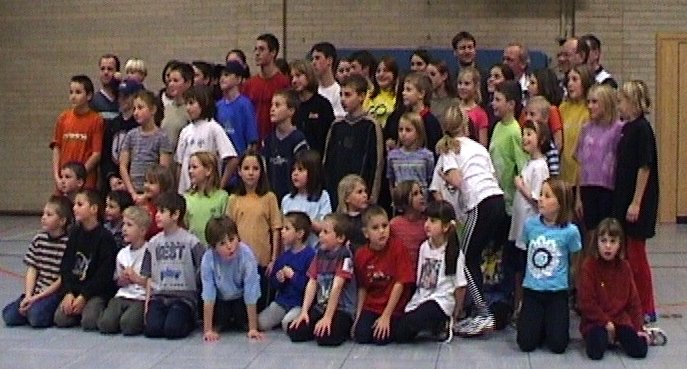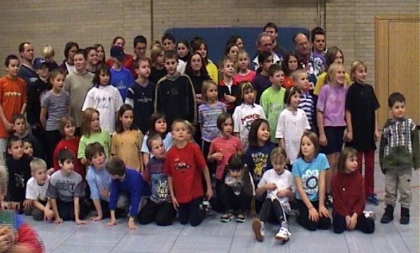 Die Leichtathletinnen und Leichtathleten des TV Haslach im Jahre 2001 beim Gruppenfoto für die Presse.