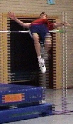 Auszüge aus dem Trainingsprogramm wurden vorgeführt: Hier Matthias Bühler bei seinem sensationellen Hochsprung über 1,65 Meter.