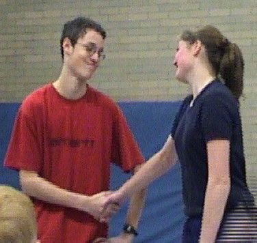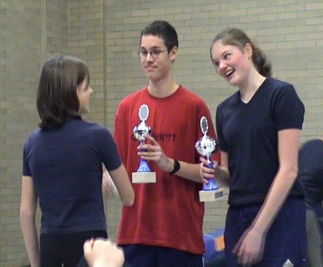 ...für Matthias Bühler (M15)und für Rebekka Kopp (W14). Sie erhielten diese Ehrung für besondere Leistungen im Jahr 2001. Der Pokal wurde von der Vorjahressiegerin Julia Hättich überreicht.