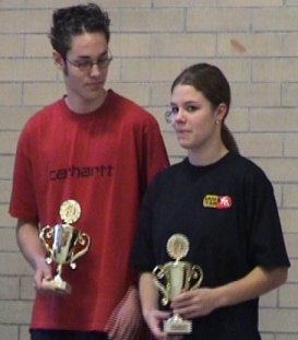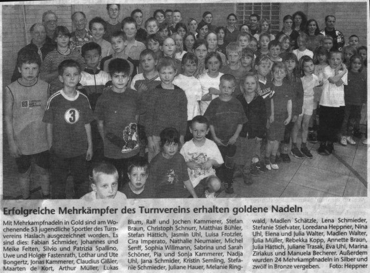 Haslachs Leichtathleten des Jahres 2002: Matthias Bühler (Jahrgang 1986, Hochsprung: 1,80m) und Annette Braun (Jahrgang 1987, 100m: 12,67s)