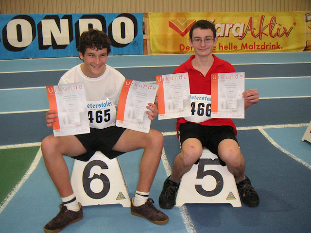 Ergebnisse A-Schüler am Sonntag: M15, 60 Meter: 6. Axel Walter 7,98 Sekunden, Weit: 11. Walter 5,05 Meter, Kugel: 6. Walter 11,70 Meter, M14, 60-Meter: 5. Armin Beil 8,27 Sekunden, Kugel: 6. Beil 10,54 Meter.