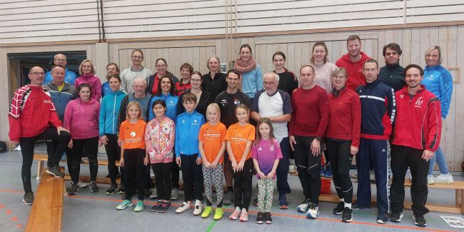 Gruppenfoto der Leichtathletik-Trainerfortbildung in Haslach mit BLV-Trainer Rolf Bader von